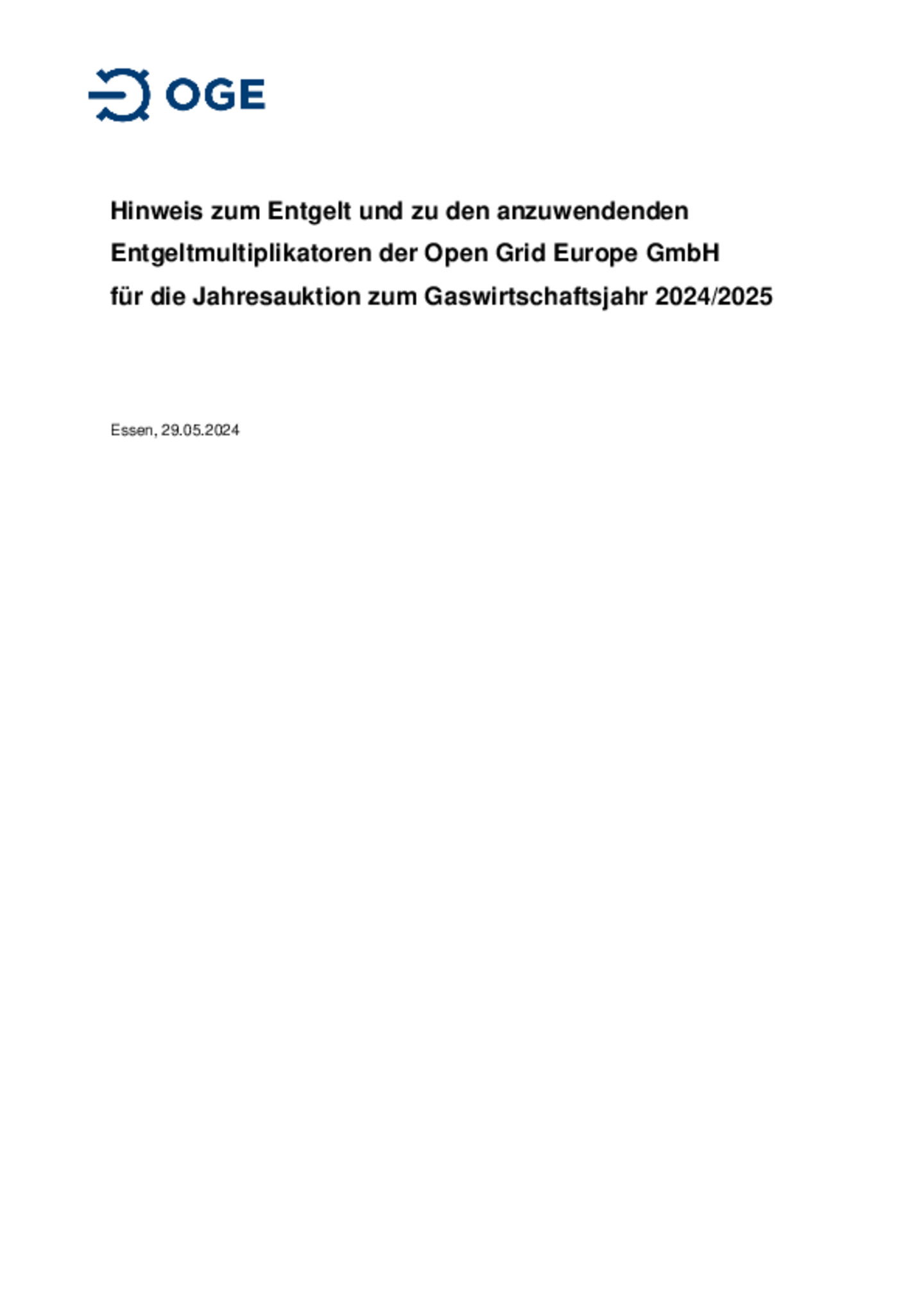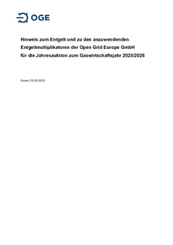 Hinweisblatt zum Entgelt und den anzuwendenden Entgeltmultiplikatoren der Open Grid Europe GmbH