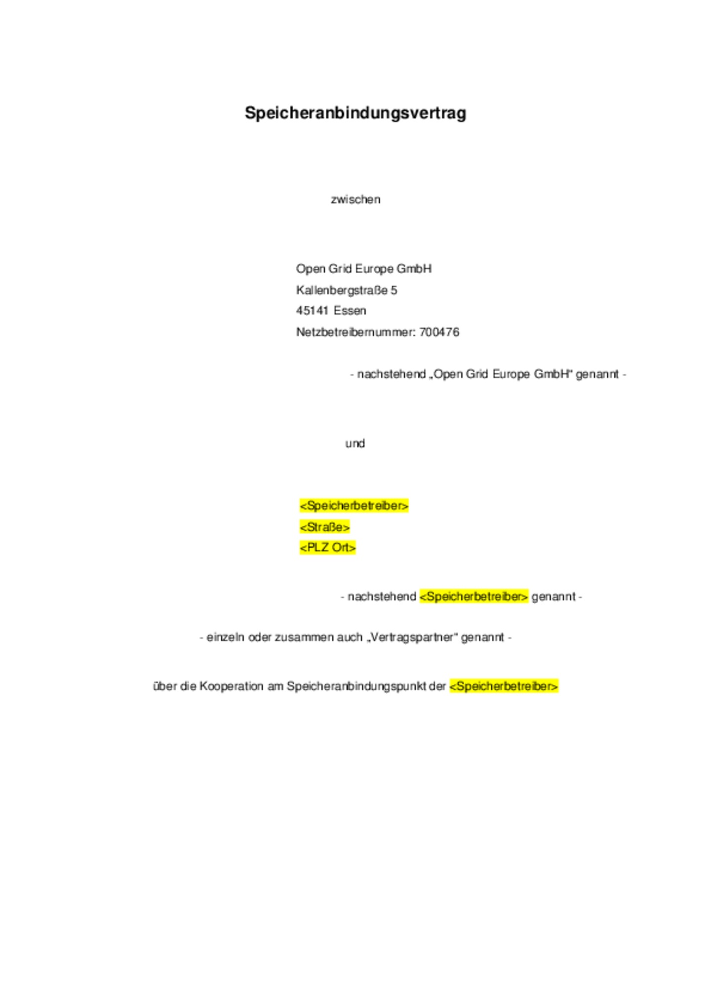 Das standardisierte Vertragsmuster des Speicheranbindungsvertrages der Open Grid Europe steht jedem interessierten Speicherbetreiber zum Download zur Verfügung.