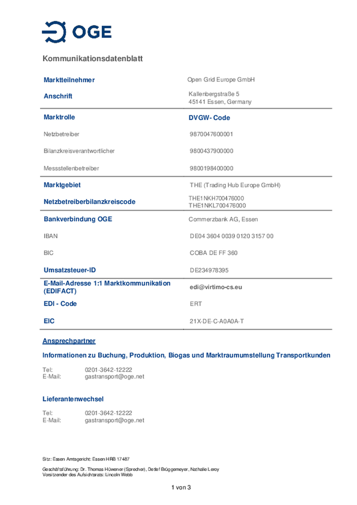 Kommunikationsdatenblatt der Open Grid Europe