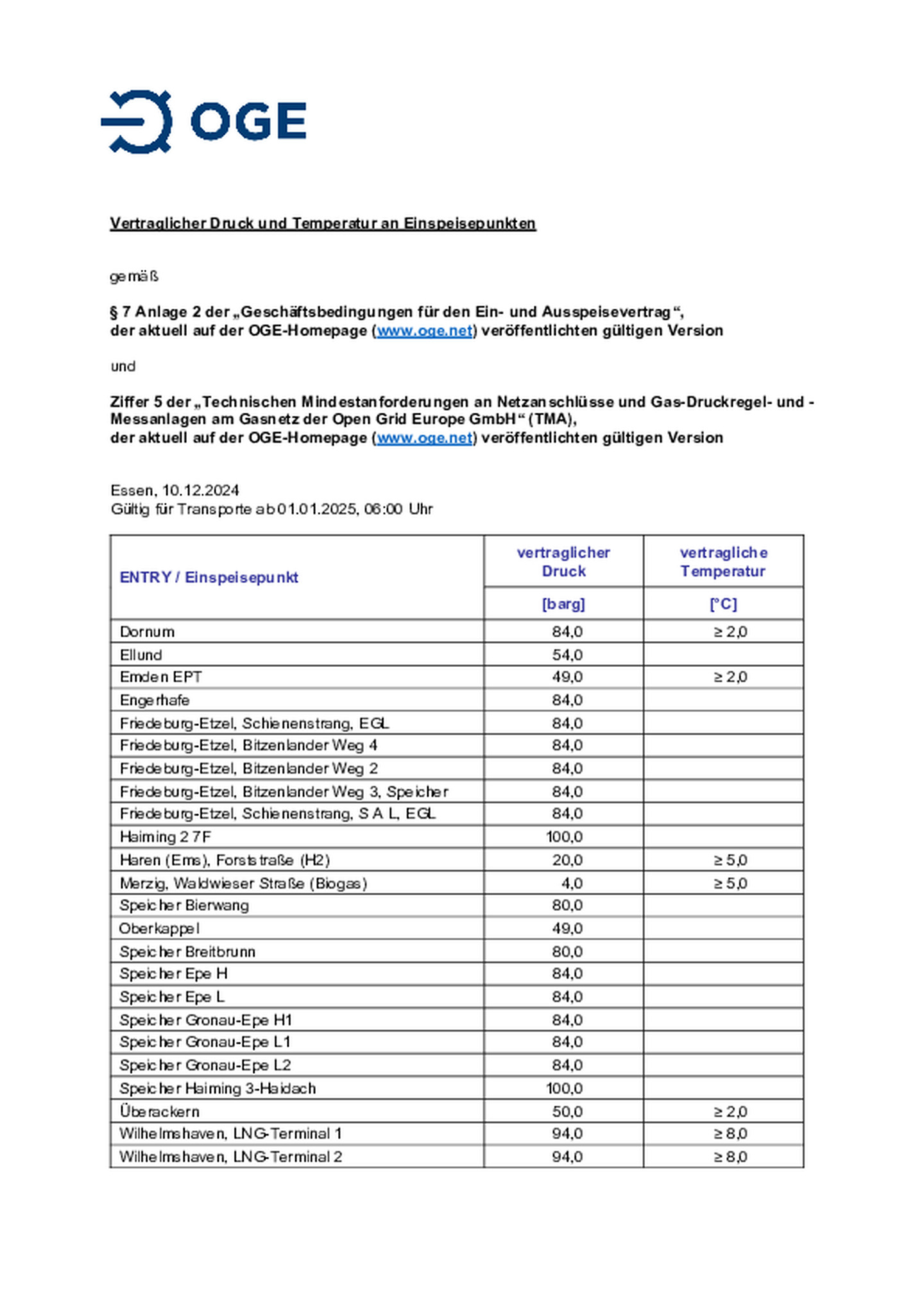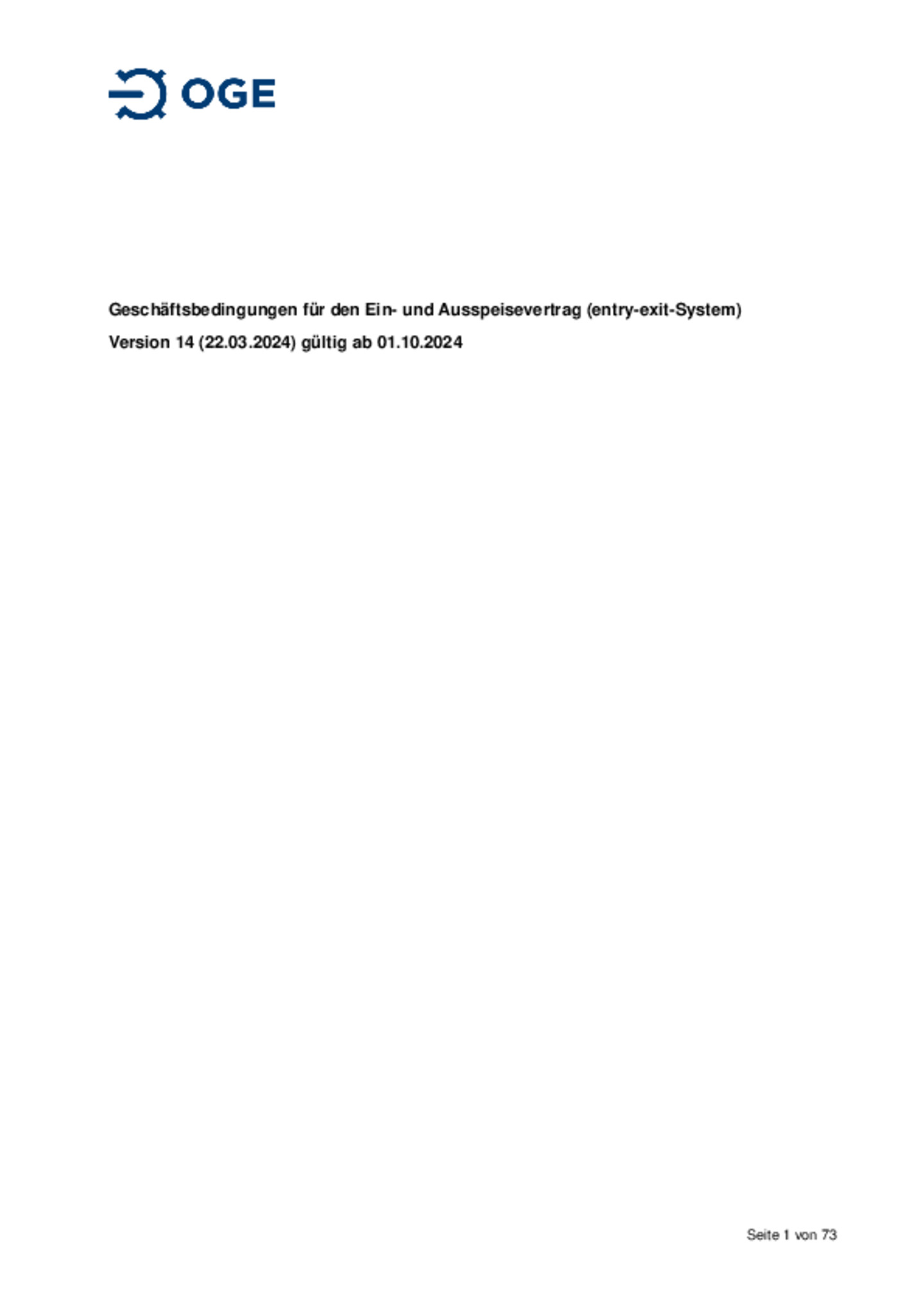 Geschäftsbedingungen für den Ein- und Ausspeisevertrag (entry-exit-System), gültig ab 01.10.2024