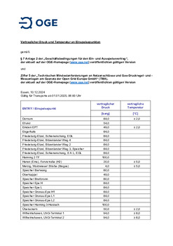 Vertraglicher Druck und Temperatur an Einspeisepunkten