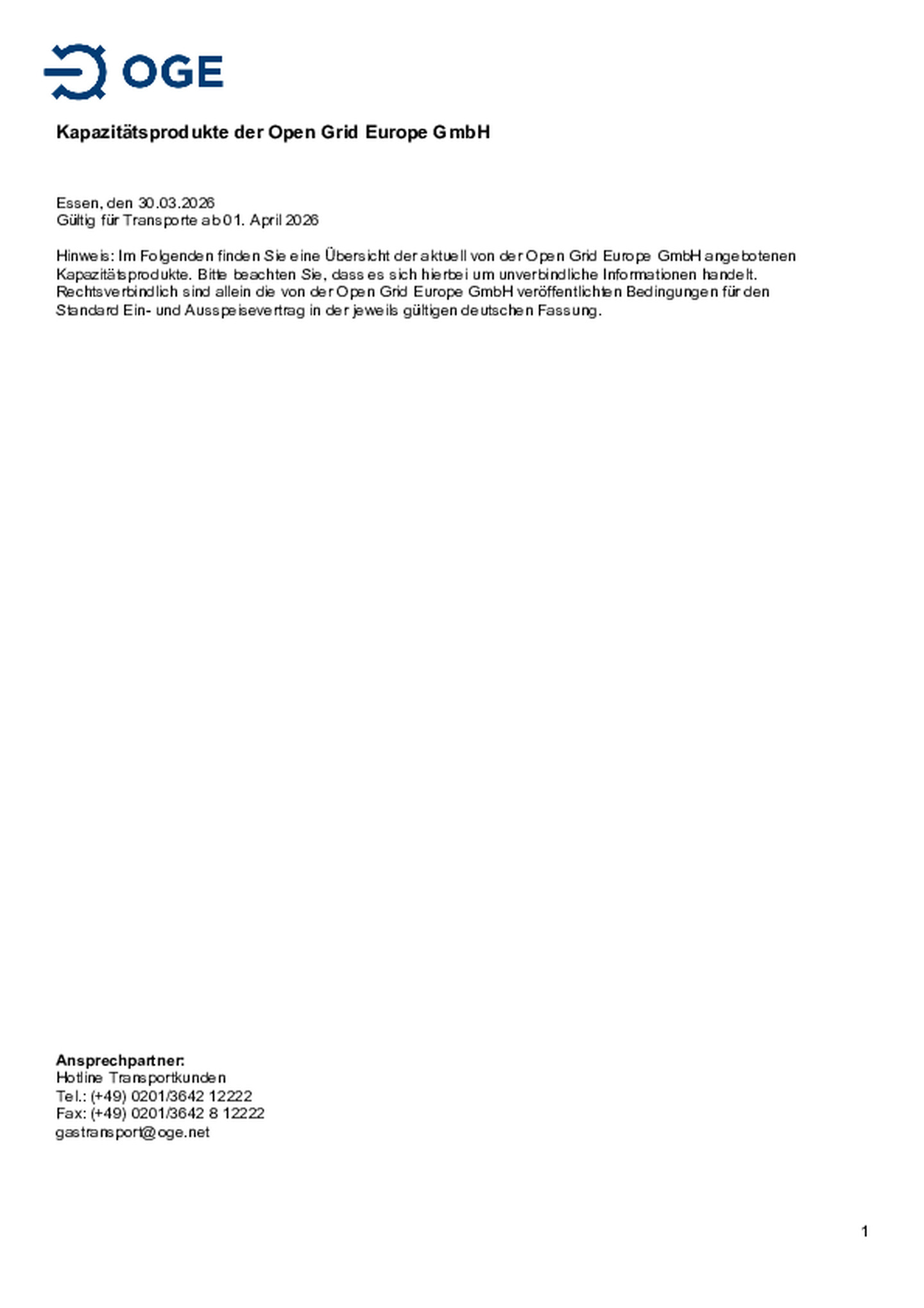 Bitte beachten Sie, dass es sich hierbei um unverbindliche Informationen handelt. Rechtsverbindlich sind allein die von der OGE veröffentlichten Bedingungen für den Standard Ein- und Ausspeisevertrag in der jeweils gültigen Fassung.
