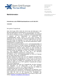 - Quartalsauktionen im Mai 2019 für den Transportzeitraum 1.7.2019 – 1.10.2019