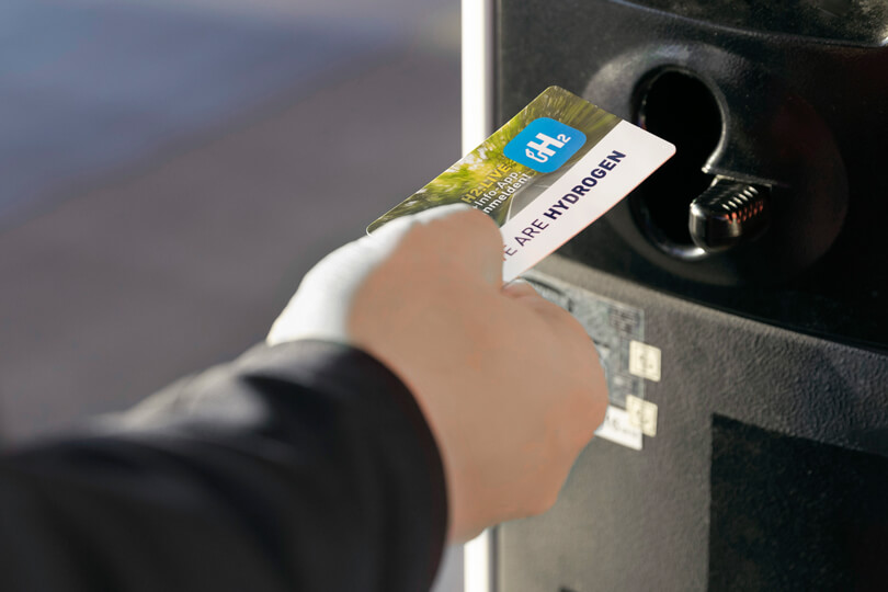 An der Tankstelle müssen wir erst die Tankkarte in die Zapfsäule stecken und die PIN eingeben. Danach verbinden wir den Tankstutzen am Fahrzeugtank. Mit 700 bar saugt der sich an. Ein extremer Druck, damit der Wasserstoff auch in den Tank gedrückt werden kann. Startknopf drücken. Fürs Volltanken warten wir etwa so lange wie auch bei Benzin und Diesel. Beleg entnehmen — und weiterfahren!