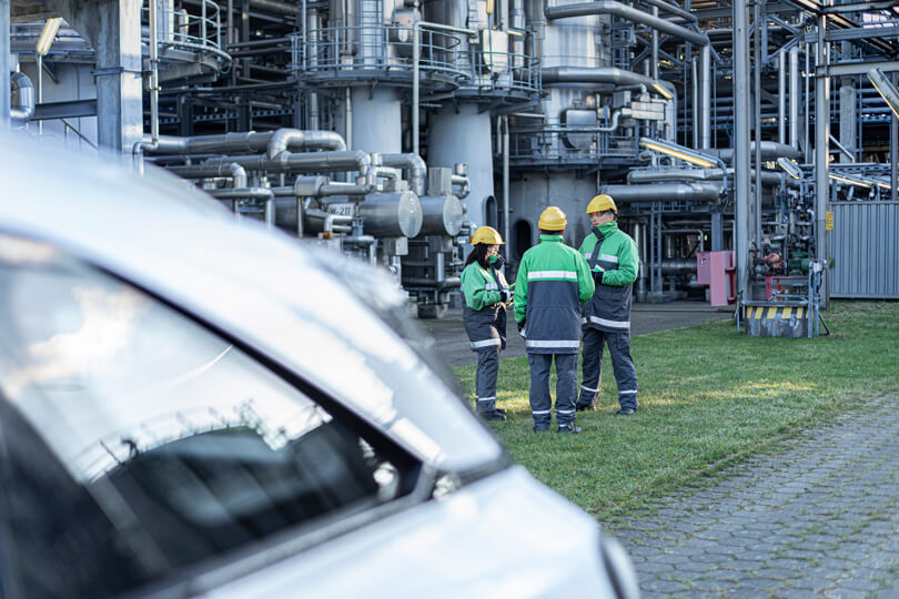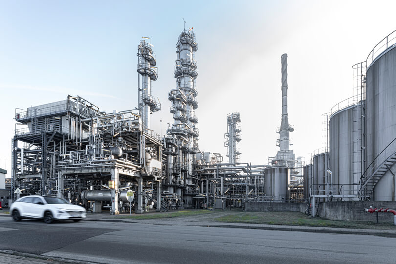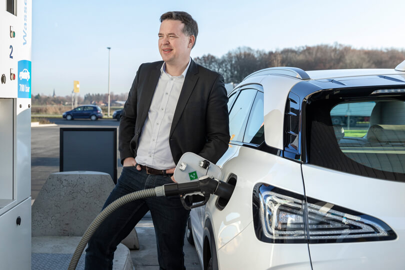 Am 4. Dezember 2019 wartet er auf dem OGE-Parkplatz in Essen auf seine Passagiere: ein Hyundai Nexo. Angetrieben von einer Brennstoffzelle, mit Strom aus Wasserstoff. Mahsa Siebold und Andreas Lehmann nähern sich dem Fahrzeug voller Neugier und Vorfreude. Die beiden sind bei OGE zuständig für Wasserstoffprojekte, die vom Gasnetzbetreiber gefördert und begleitet werden. Der ADAC lobt das „alltagstauglichste Brennstoffzellenfahrzeug auf dem Markt“. Mit nur 1,2 Kilogramm Wasserstoff soll der Nexo 540 Kilometer weit kommen. Von Essen bis nach Hemmingstedt in Schleswig-Holstein sind es rund 450 Kilometer. Das müsste das Fahrzeug eigentlich schaffen.