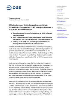 Zuverlässige und sichere Fertigstellung der WAL in Rekordgeschwindigkeit. WAL transportiert LNG aus Wilhelmshaven in das deutsche Ferngasnetz und trägt zur deutschen Energieversorgung bei. Leitung …ist H2-ready und ein wichtiger Eckpfeiler für die künftige Wasserstoffwirtschaft in Deutschland