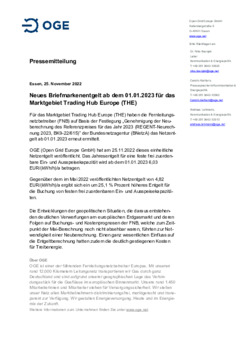 Neues Briefmarkenentgelt ab dem 01.01.2023 für das Marktgebiet Trading Hub Europe (THE)