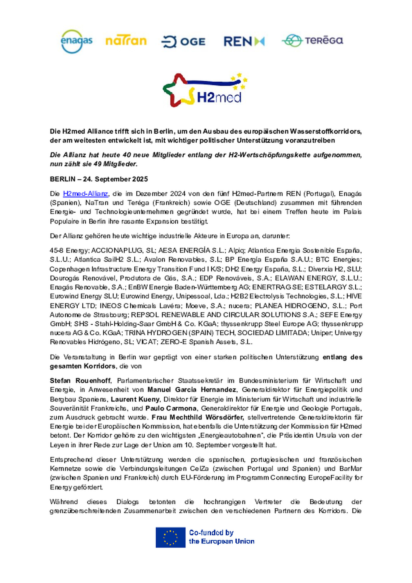 H2med Alliance Gathers in Berlin to Accelerate European Hydrogen Corridor (DE, 2025-09-24)