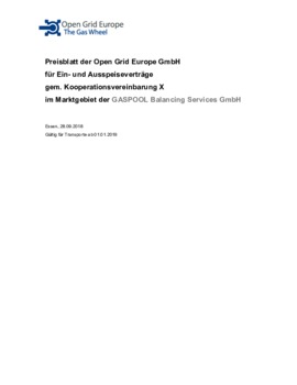 Ergänzung zum am 28.09.2018 veröffentlichten Preisblatt der Open Grid Europe GmbH für Ein- und Ausspeiseverträge sowie interne Bestellungen gem. Kooperationsvereinbarung X im Marktgebiet der NetConnect Germany GmbH & Co. KG (Preisblatt 2019)