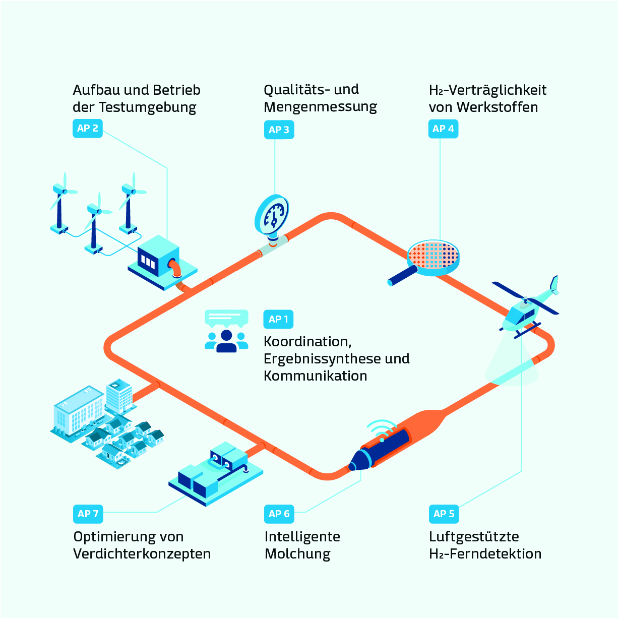 Für das Projekt wird in Lingen (Ems) ein Test- und Demonstrationsumfeld rund um eine Versuchspipeline aufgebaut und betrieben. Dabei werden neue Technologien und Methoden für den praktischen Einsatz entwickelt und getestet. Das Projekt hat eine Laufzeit bis April 2025.
