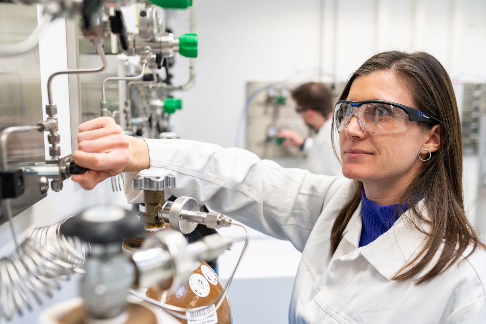 Innerhalb von zwei Jahren hat OGE das innovative TransHyDE H2-Labor am Standort Essen geplant, gebaut und in Betrieb genommen. Das Projekt TransHyDE gehört zu einem von drei Wasserstoff-Leitprojekten, die vom Bundesministerium für Bildung und Forschung gefördert werden.