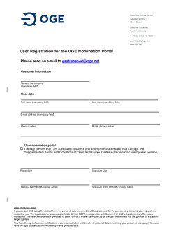 • A PRISMA Shipper Admin must first request the assignment of the new user to OGE via PRISMA.