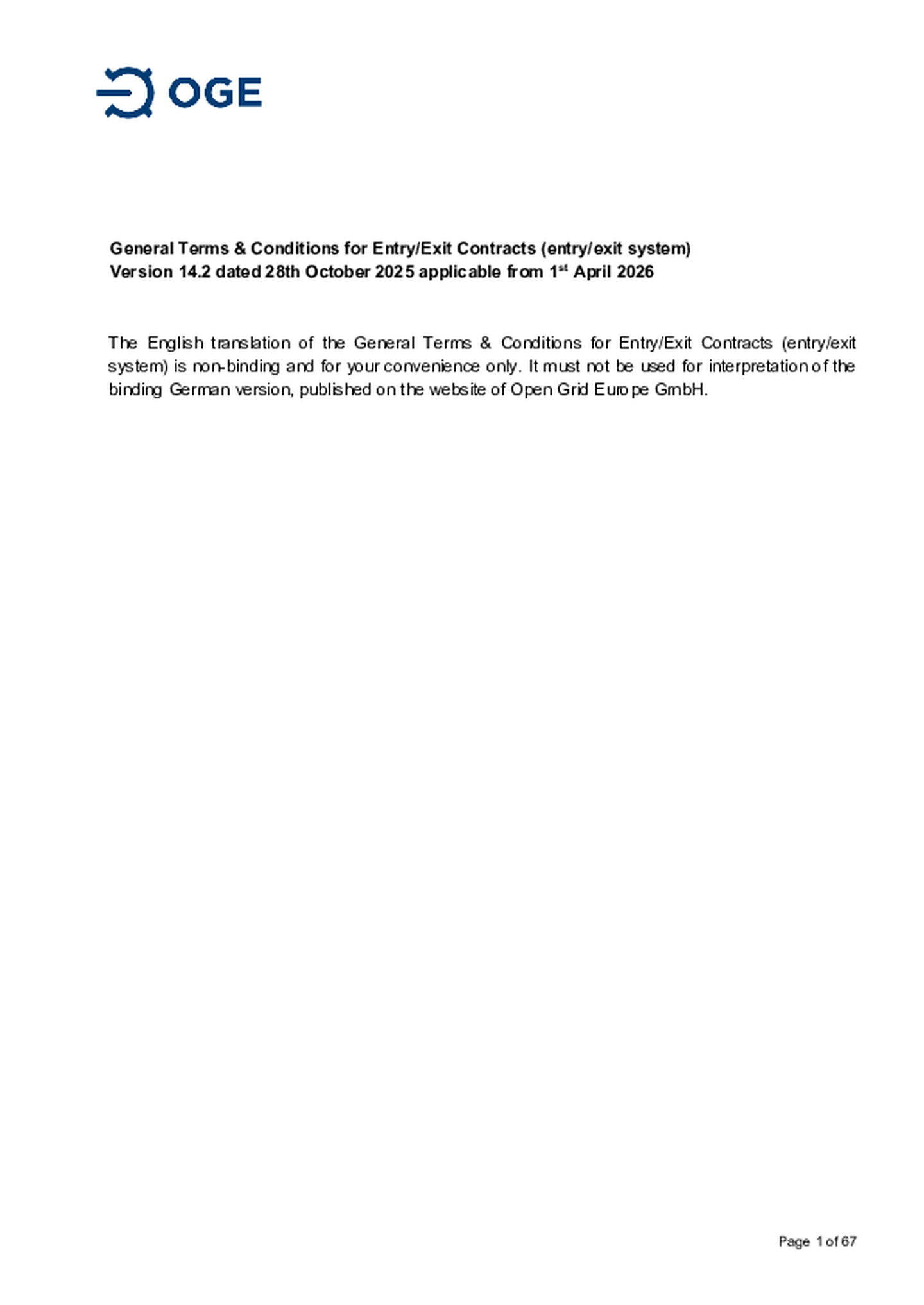 Supplementary Terms and Conditions of Open Grid Europe GmbH