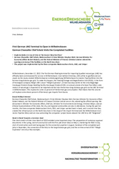 First German LNG Terminal to Open in Wilhelmshaven. German Chancellor Olaf Scholz Visits the Completed Facilities.