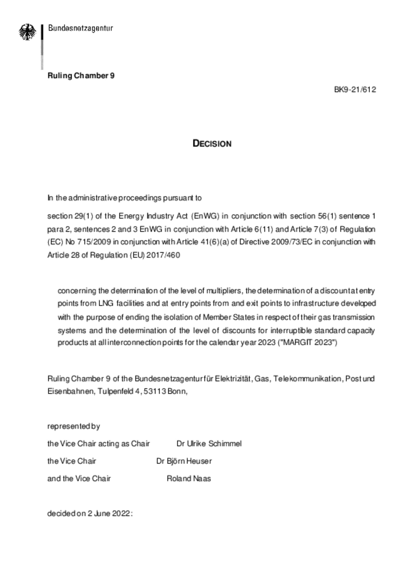 The gas transmission system operators (TSOs) have recalculated their network charges for the Trading Hub Europe (THE) market area applicable from 1 January 2023 on the basis of the Federal Network …Agency's (BNetzA) decision entitled "Approval of the recalculation of the reference price for 2023 (REGENT recalculation 2023, BK9-22/615)".