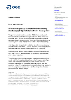 New uniform postage stamp tariff for the Trading Hub Europe (THE) market area from 1 January 2023