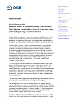 For the hydrogen ramp-up to succeed now, industry and politics need to work hand-in-glove. What this cooperation should look like and how politicians at federal and state level and industry can …support each other was the subject of the 8th Energy Policy Dialogue 2022 hosted by OGE in Berlin for the first time.