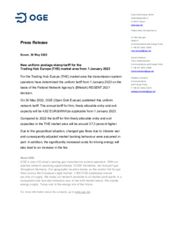 New uniform postage stamp tariff for the Trading Hub Europe (THE) market area from 1 January 2023
