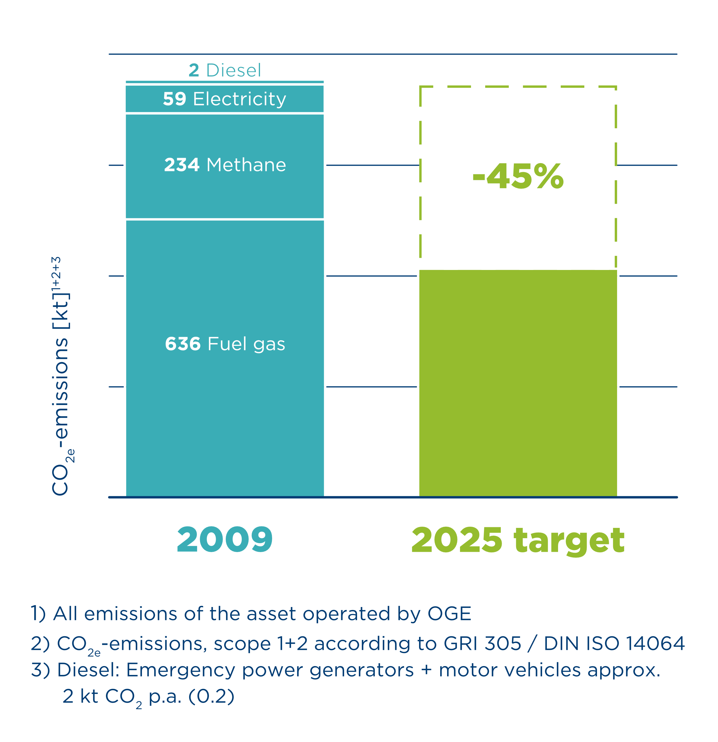 To achieve our shared climate targets in Germany and Europe, we need to cut GHG emissions in all areas, which is why we at OGE set ourselves ambitious reduction targets.